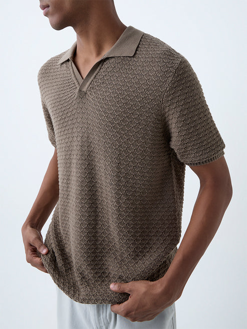 Be the first to review “ETA Brown Knit-Textured Relaxed-Fit Cotton Polo T-Shirt”