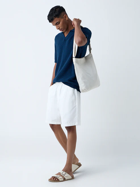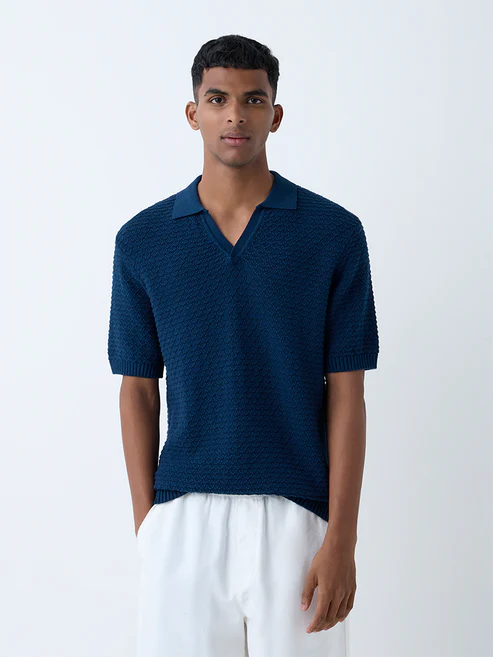 Be the first to review “ETA Indigo Knit-Textured Relaxed-Fit Cotton Polo T-Shirt”