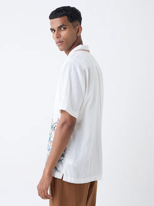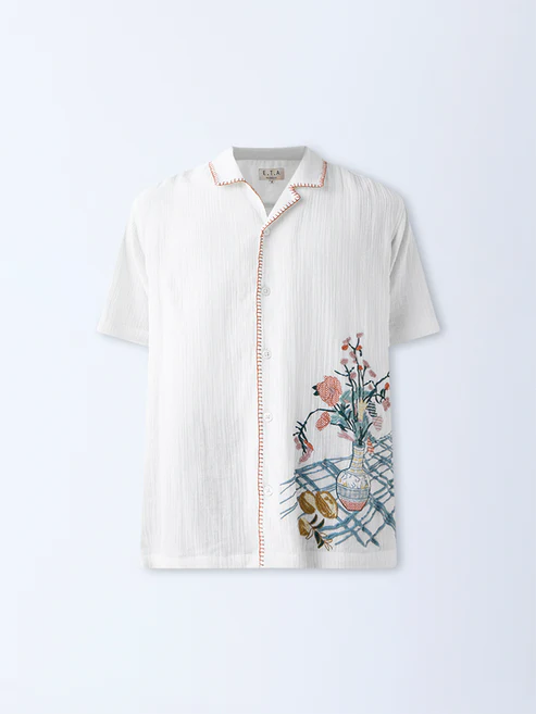 ETA White Embroidered Resort-Fit Cotton Shirt