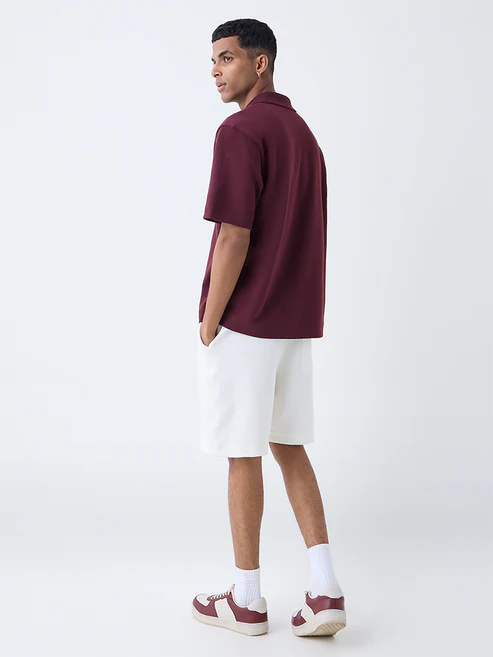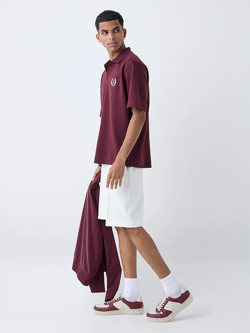 Studiofit Maroon Embroidered Relaxed-Fit Polo T-Shirt